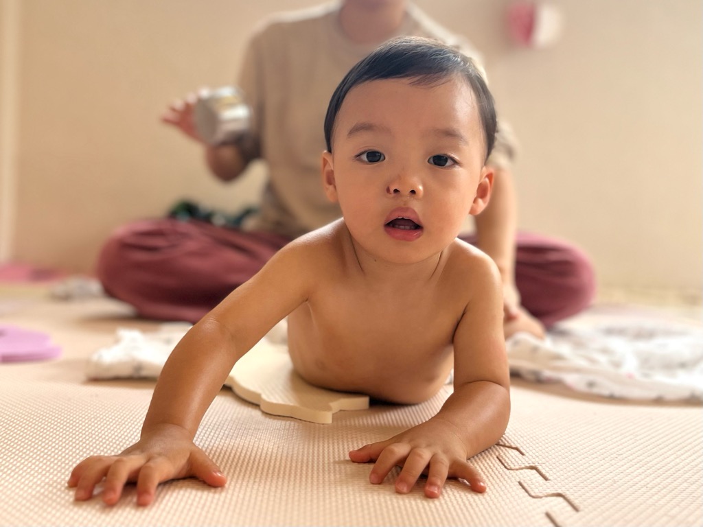 ハイハイ練習中の子はあんよが強く「なんならタッチしちゃおうか?」って、目力旺盛・意欲満々で頼もしかったです。